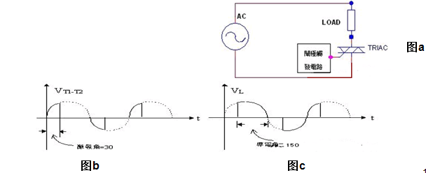 TRIAC的相位控制與SCR很類似,但因TRIAC能雙向?qū)ㄖ?,在正?fù)半周均能觸發(fā)、可作為全波功率控制之用,因此TRIAC除具有SCR的優(yōu)點(diǎn), 更方便于交流功率控制,圖(a)為TRIAC相位控制電路,只適當(dāng)?shù)恼{(diào)整RC時(shí)間常數(shù)即可改變它的激發(fā)角,圖(b),(c)分別是激發(fā)角為30度時(shí)的 VT1-T2及負(fù)載的電壓波形,一般TRIAC所能控制的負(fù)載遠(yuǎn)比SCR小,大體上而言約在600V,40A以下。