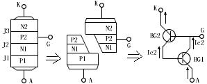 圖1、可控硅結(jié)構(gòu)示意圖和符號圖