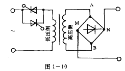 反并聯串入電路中進行電壓調節。高壓側A、B兩端得到高壓交流電.經整流橋后于M、N兩端得到高壓直流電。