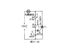 圖1—30用W、R、C組成移相電路。同步電壓取自3CTS的T1及T2兩端。觸發脈沖通過雙向二極管2CTS觸發3CTS
