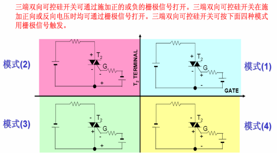 雙向可控硅可以用門極和T1 間的正向或負向電流